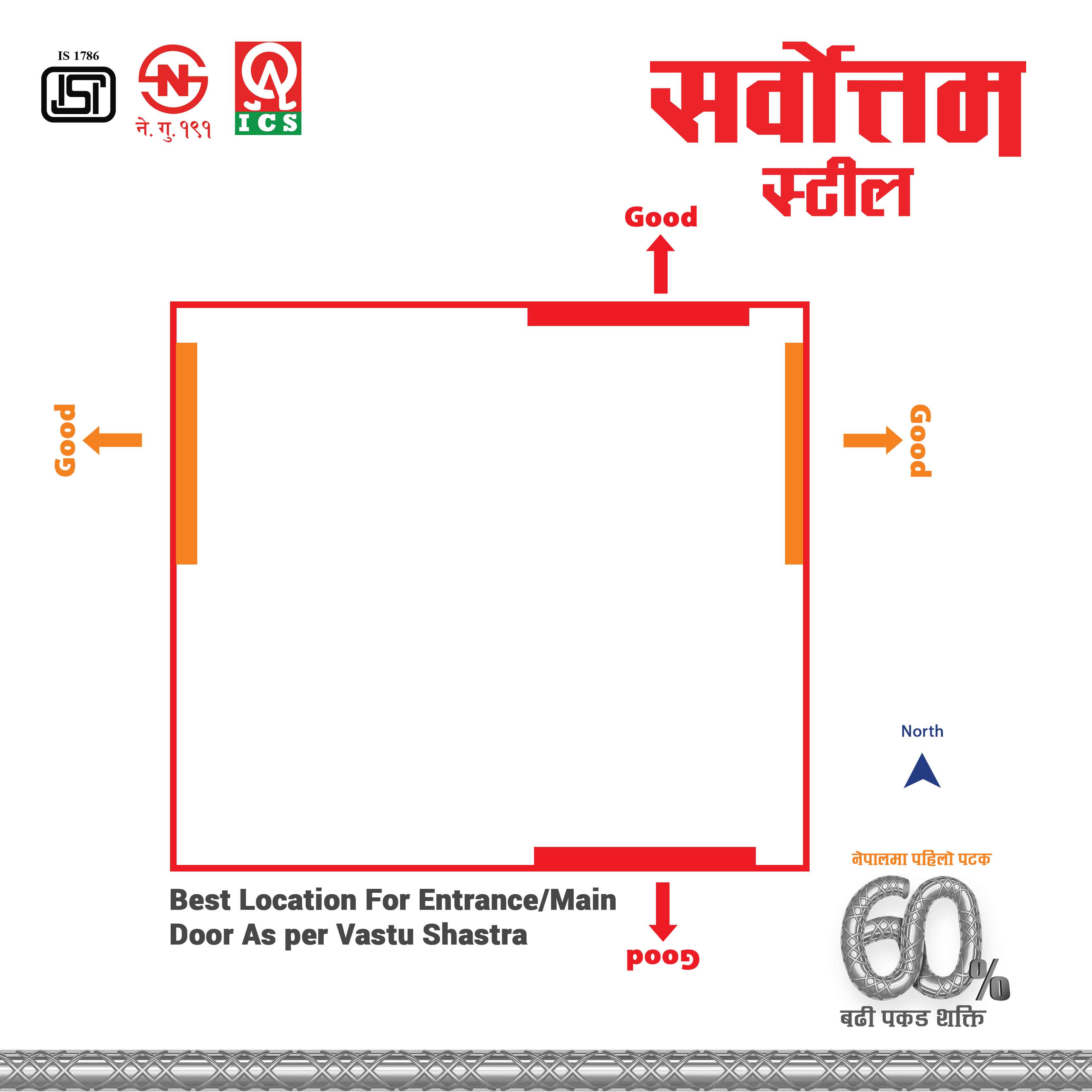 Optimal directions for the entrance are North and East sides of the house.